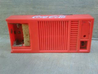 Radio coca cola, kondisi belum dicoba, mengunakan 4 batrai, tutup batrai hilang.